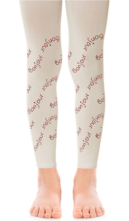 גרביון ילדות אטום ללא כף רגל בצבע קרם עם הדפס טיפוגרפי