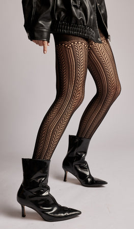 גרביון נשים שחורים חצי שקופים בדוגמת תחרה