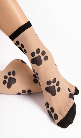 גרבי ניילון שקופים עם הדפס כפות רגליים מתקתק