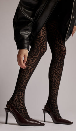 גרביון נשים מנומר בצבע שחור בעל טכניקות סריגה ייחודיות ומשחקי טקסטורות