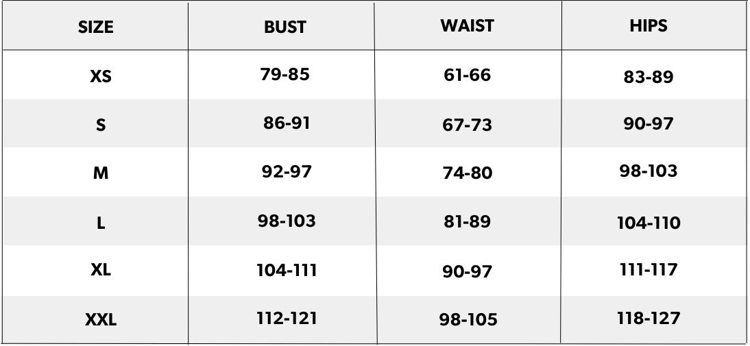 *טבלה זו מספקת הכוונה כללית בלבד. ייתכנו הבדלים בהתאם לגזרות ולעיצובים השונים