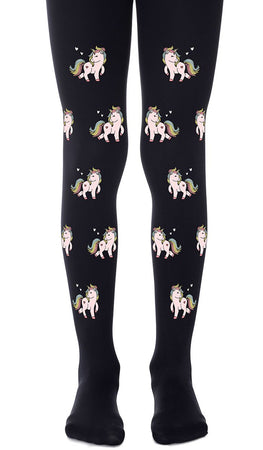 גרביון ילדות אטום בצבע שחור עם חדי קרן